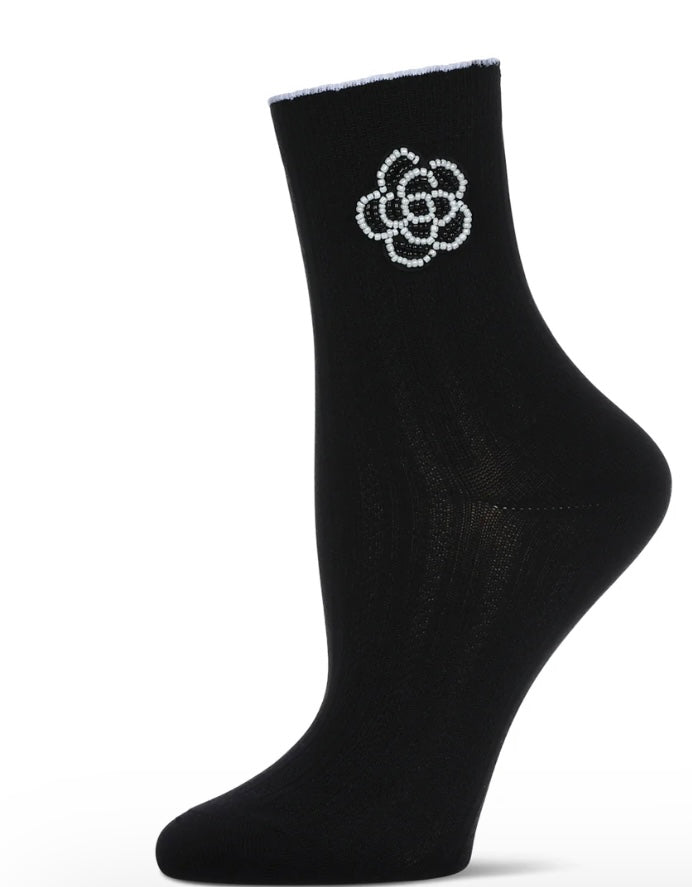Memoi Beaded Blossom Crew Sock
