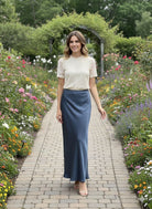 This Mima Rosso Dark Slate Satin Slip Skirt is made from luxurious satin material and comes in a beautiful slate color. Elevate your wardrobe with this versatile and stylish skirt, perfect for any occasion. Enjoy the comfort and sophistication this slip skirt provides.Discounted products are not returnable or exchangeable