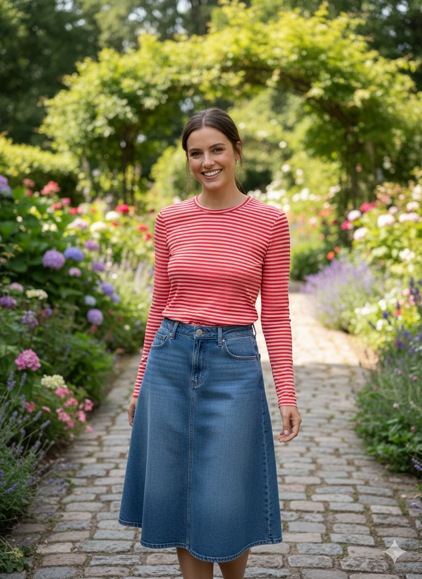 Monn Dark Wash Chambray Full Circle Skirt