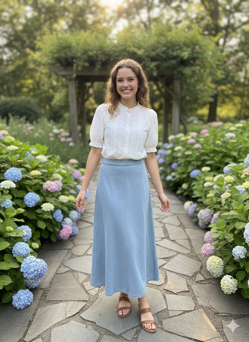 Monn Light Wash Chambray Full Circle Skirt