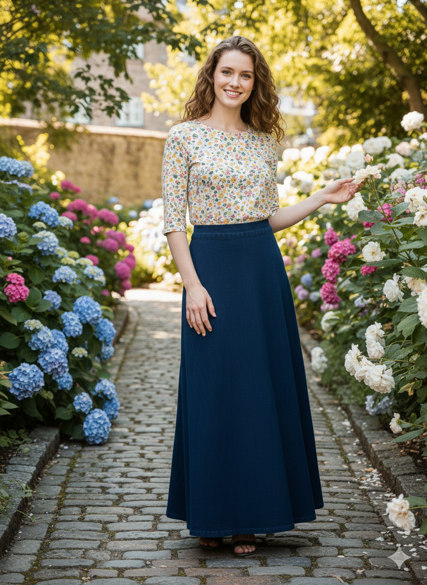 The Monn Dark Wash Chambray Full Circle Skirt is crafted from dark denim, providing durability and a classic aesthetic. Its side zipper offers a secure fit, enhancing comfort during wear. This skirt is ideal for versatile styling, suitable for both casual and semi-formal occasions. Note that discounted items are final sale.