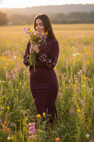 This Monn sweatshirt features elegant embroidered floral sleeves in a rich wine color. Elevate your casual look with this unique and stylish statement piece. Crafted with high-quality materials, this sweatshirt offers both comfort and sophistication. Perfect for any occasion, from a cozy night in to a chic night out.Discounted products are not returnable or exchangeable