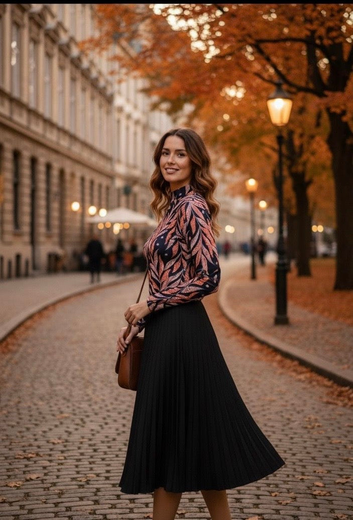Product experts agree that the Riff Printed Black Rust Mock Neck Turtleneck is the perfect combination of fashion and functionality. The printed black and rust mock turtleneck adds a touch of style to any outfit, while also providing a protective layer against the cold. Stay warm and fashionable with this must-have piece in your wardrobe.Discounted products are not returnable or exchangeable