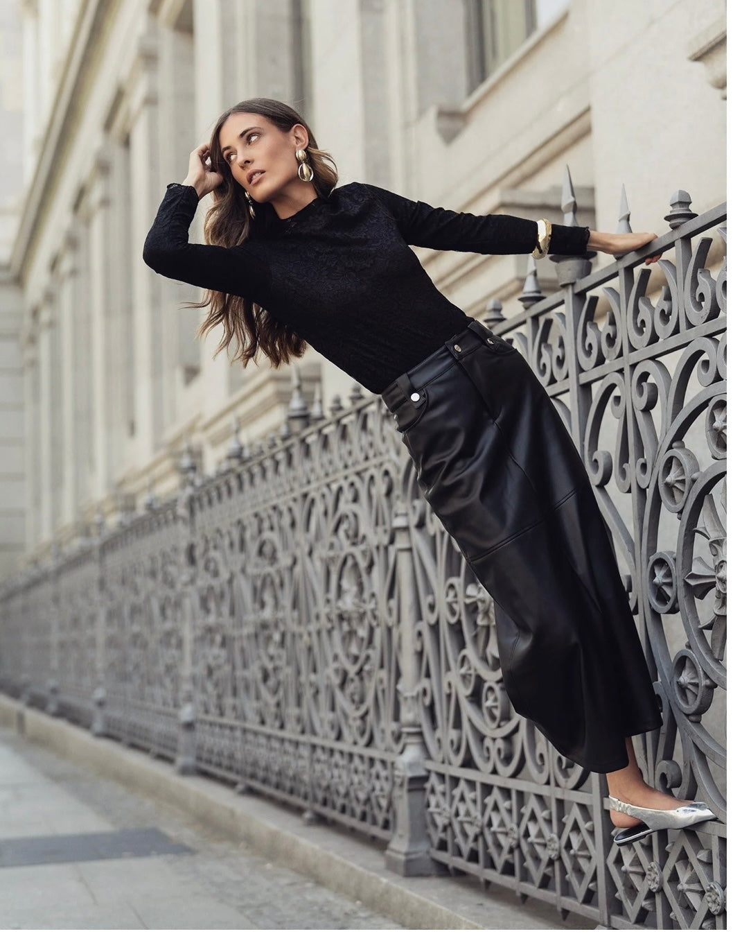 Styling Tip: Pair it with the Theo Bodysuit for a sleek, head-to-toe look that balances softness and structure. Style with knee-high boots and sculptural earrings for a city-ready ensemble, or opt for loafers and a relaxed blazer for understated polish.