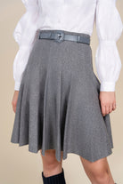 Discover effortless elegance with the Apparalel Bailey Skirt in Steel. This flared knit skirt is sure to elevate your style with its sleek and sophisticated design. Crafted in a timeless steel color, this skirt is perfect for any occasion. Let its flattering silhouette and comfortable fit become a staple in your wardrobe.Discounted products are not returnable or exchangeable