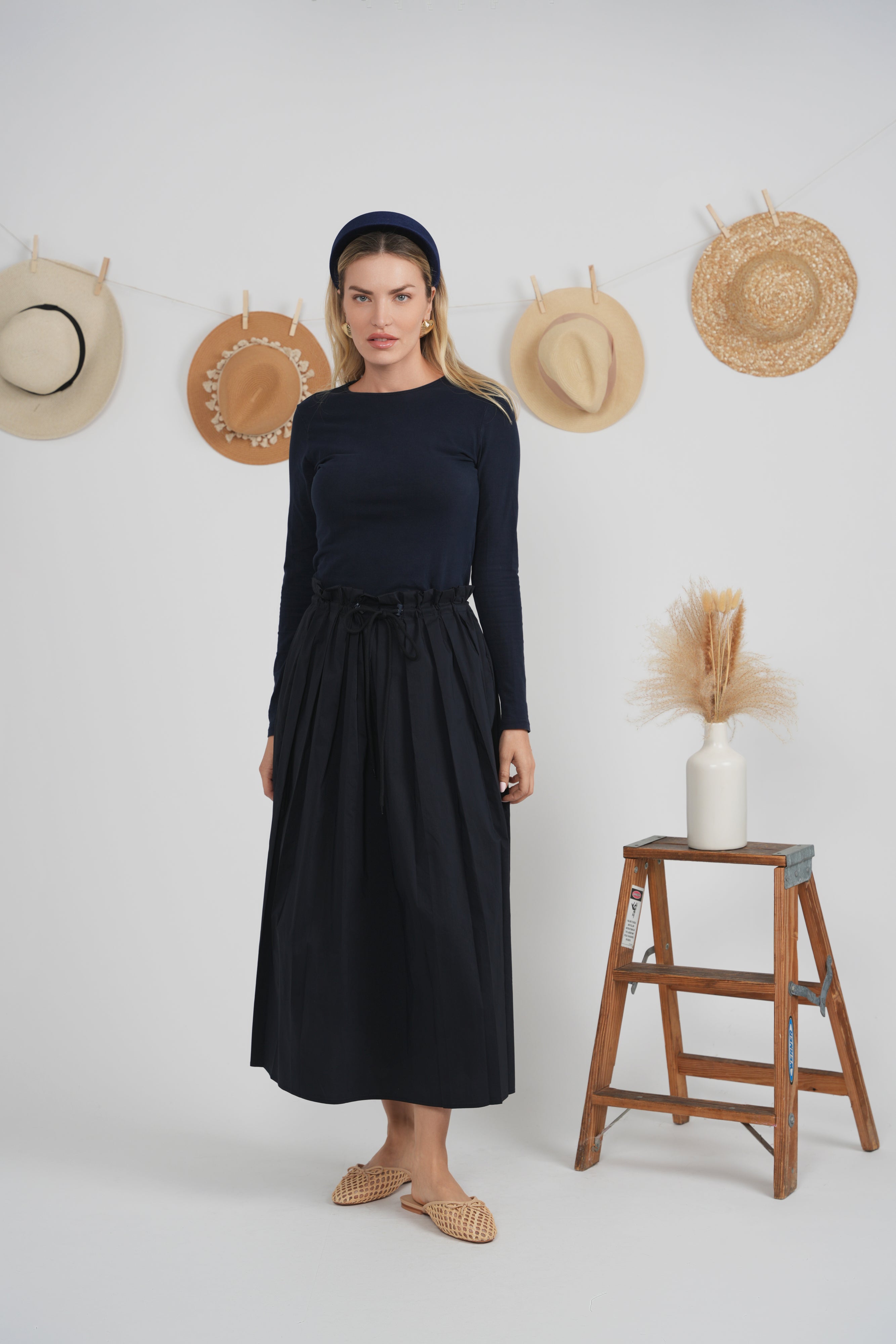 EUX Cotton Midi Paper Bag Skirt