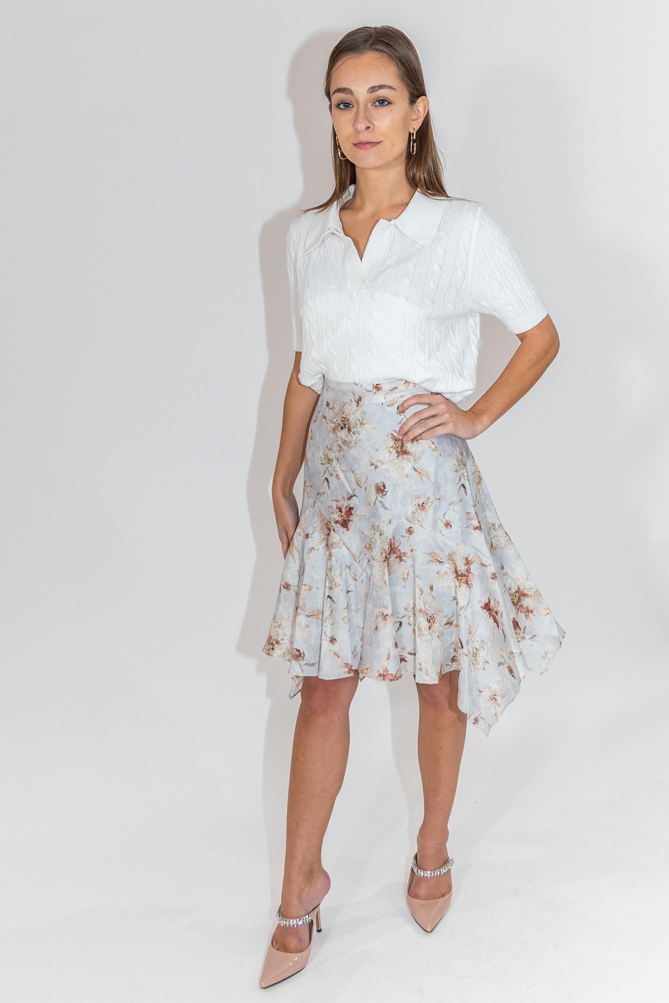 A poetic fusion of soft movement and effortless beauty, The Watercolor Handkerchief Hem Skirt is designed for the woman who embraces refined romance. Featuring an ethereal floral print reminiscent of delicate watercolor brushstrokes, its muted blues, warm neutrals, and soft rust tones create a look that is both dreamy and sophisticated.