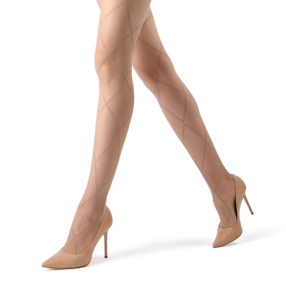 These sheer fashion tights feature a large, open diamond pattern. Crafted on silky, durable stretch nylon for repeat use, with sheer toe and brief cotton gusset.