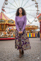 Expertly crafted with a checkered design in delicate lilac and cream hues, the Point Checker Knit Cardigan is a versatile addition to any wardrobe. Made with soft knit fabric, this cardigan offers comfort and style for any occasion. Elevate your look and make a statement with this must-have piece.Discounted products are not returnable or exchangeable