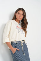 Point Graphic Cream Bon Voyage Roll Cuff Tee