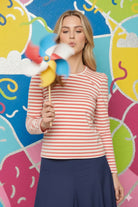 Point Hibiscus Stripe Puff Sleeve Crew Top
