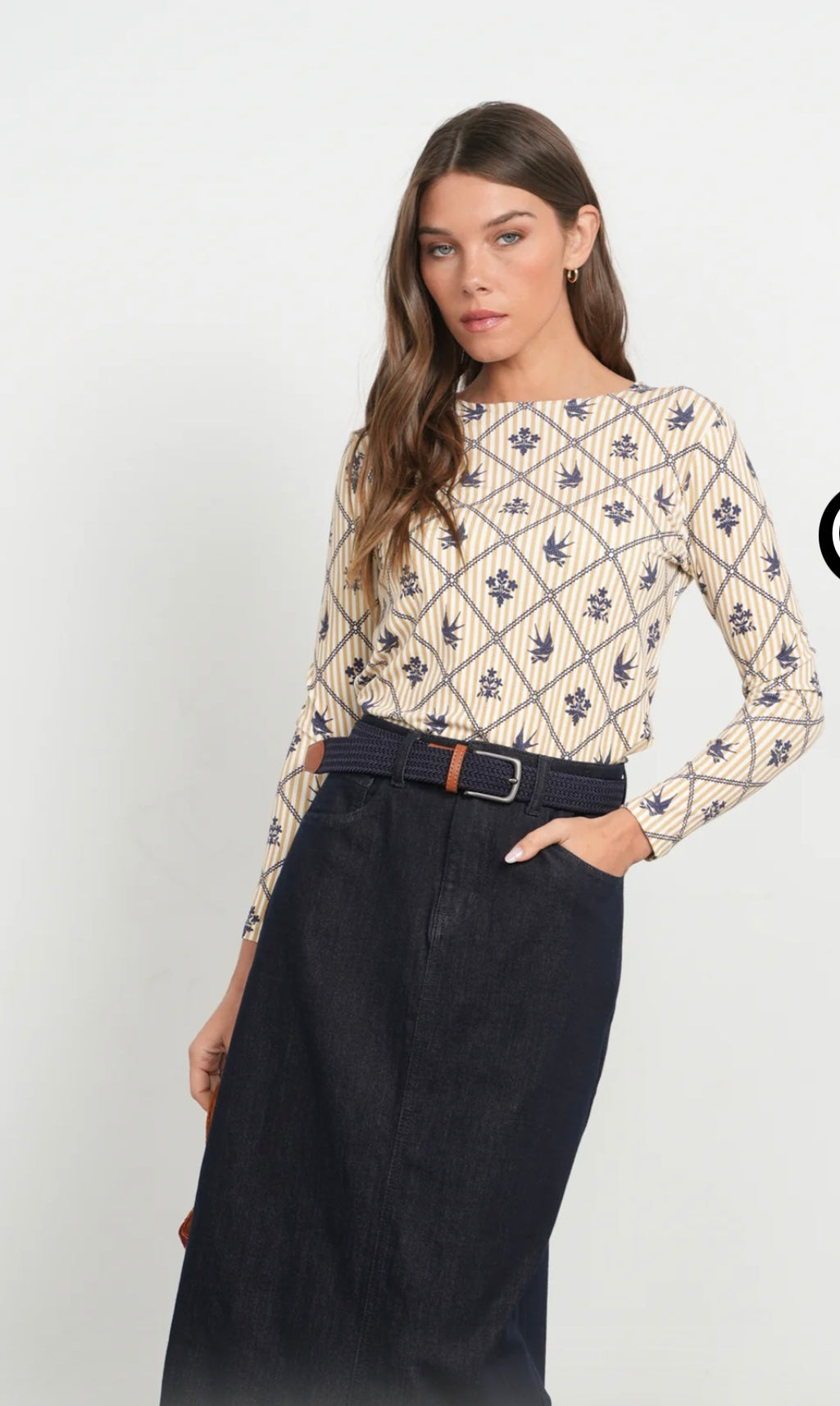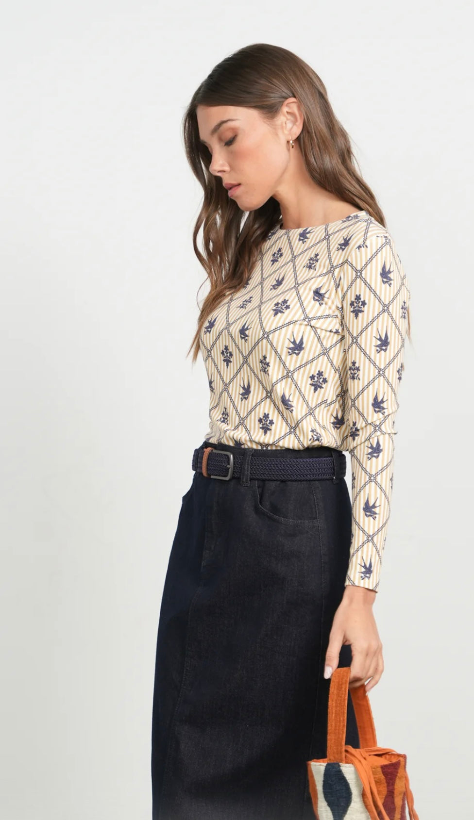 The Point Printed Embroidered Bird Jersey Crew is a camel stripe T-shirt featuring a detailed blue bird and flower design. This combination of colors enhances visual appeal, while the high-quality jersey fabric ensures comfort and breathability, making it suitable for everyday wear.Discounted products are not returnable or exchangeable