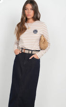 The Point Coffee Stripe Graphic Top features a long-sleeve design with an iced coffee stripe pattern and a distinct point logo patch on the left side. This top offers both style and comfort, making it suitable for casual wear. The breathable fabric ensures ease of movement and all-day comfort.Discounted products are not returnable or exchangeable