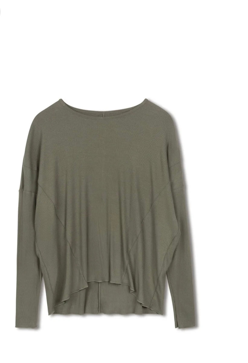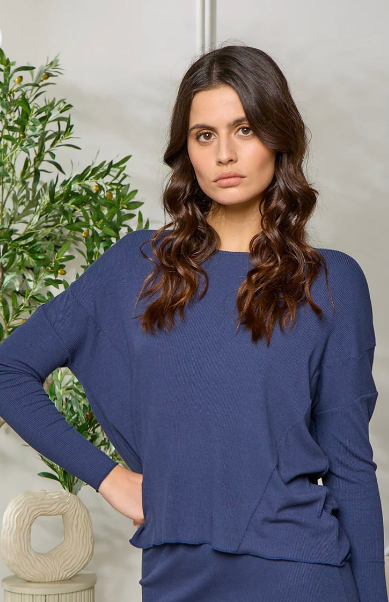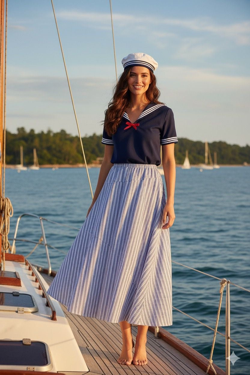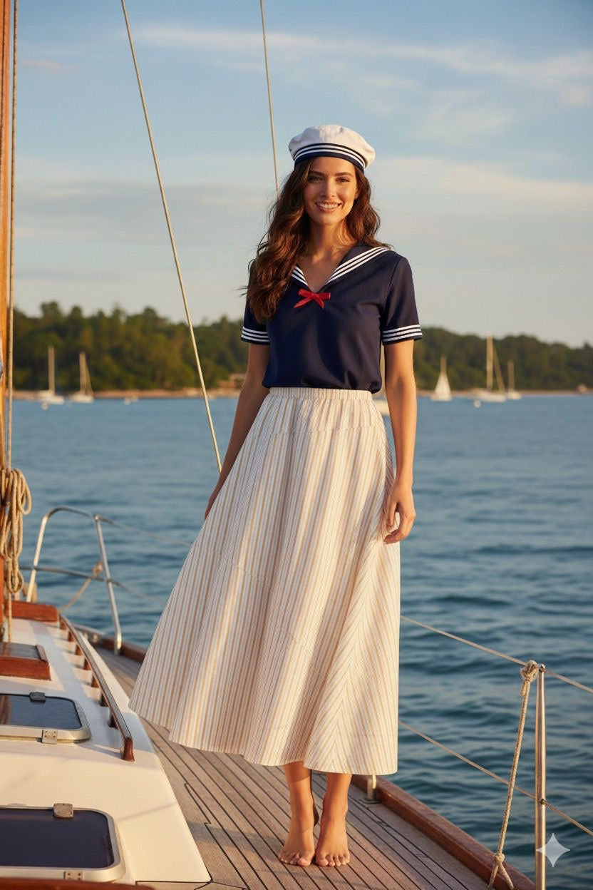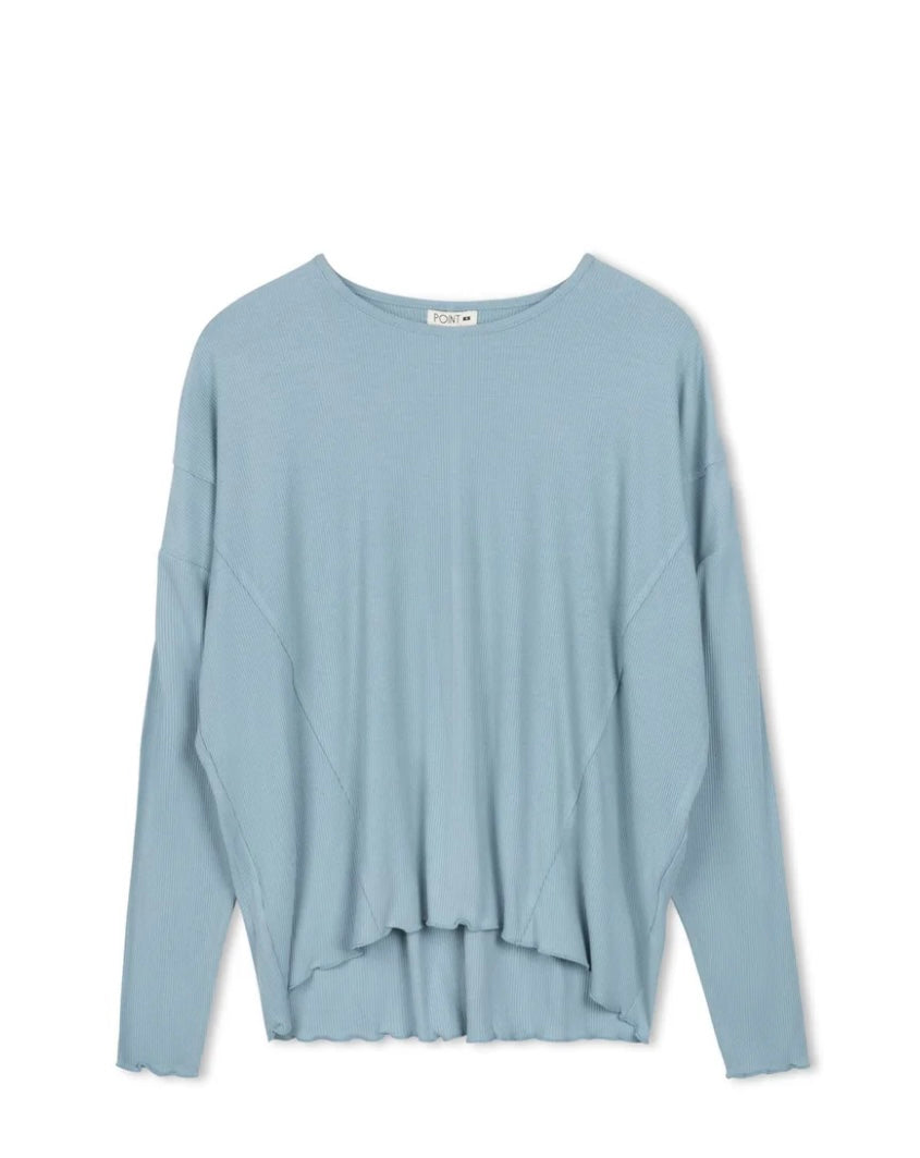 Point Hibiscus Stripe Puff Sleeve Crew Top