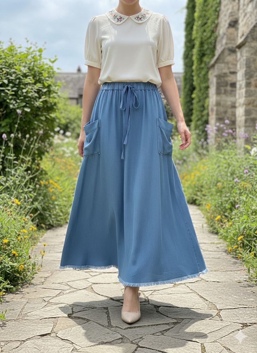Expertly crafted with functionality and style in mind, the Buhu Chambray Aline Pocket Maxi Skirt offers the perfect blend of convenience and fashion. Its draw string waist and 2 pockets provide practicality, while fringes along the bottom add an elegant touch. Perfect for any occasion, this skirt is a must-have addition to your wardrobe.Discounted products are not returnable or exchangeable