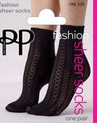 A cute textured pattern sheer sock ankle high with pretty design detailing.