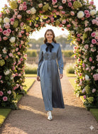 This Soie Satin Shirt Dress features a luxurious satin fabric in a stunning blue hue. Its unique black tie yourself bow at the collar adds a touch of sophistication. Perfect for any occasion, it combines style and comfort effortlessly. Elevate your wardrobe with this impeccable shirt dress.Discounted products are not returnable or exchangeable
