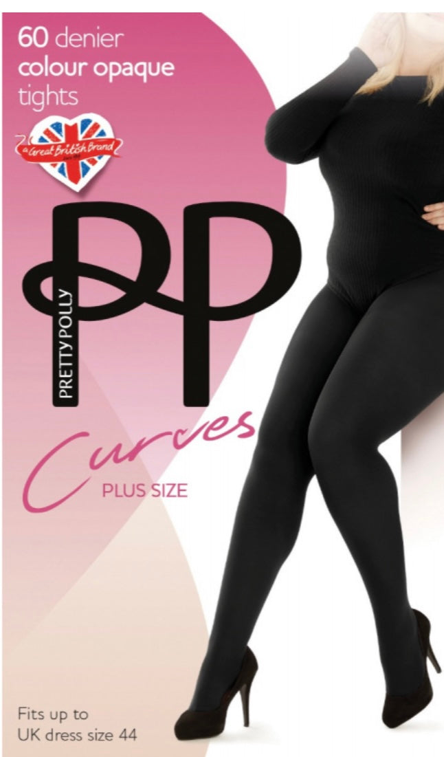 Pretty Polly Curves 60 denier Plush Opaque Tights are finished with a touch of cashmere for a velvet matt leg look.