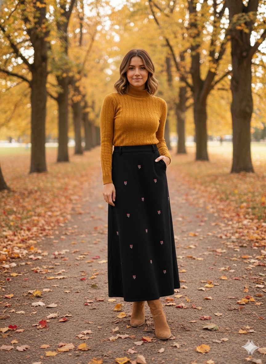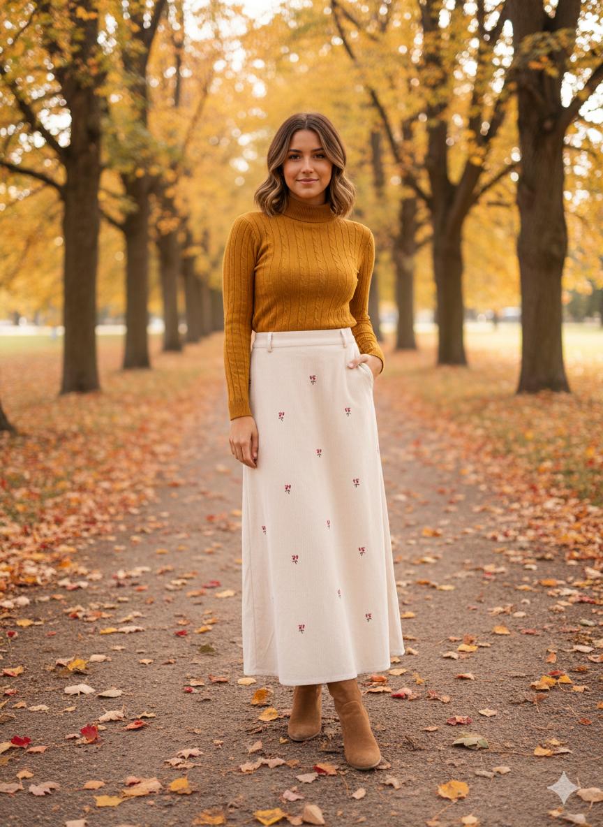 This oat and black Aline corduroy skirt features a delicate embroidered floral print, adding a touch of elegance to your outfit. Crafted from high-quality corduroy, this skirt offers both comfort and style. Perfect for any occasion, this skirt is a must-have addition to your wardrobe.Discounted products are not returnable or exchangeable