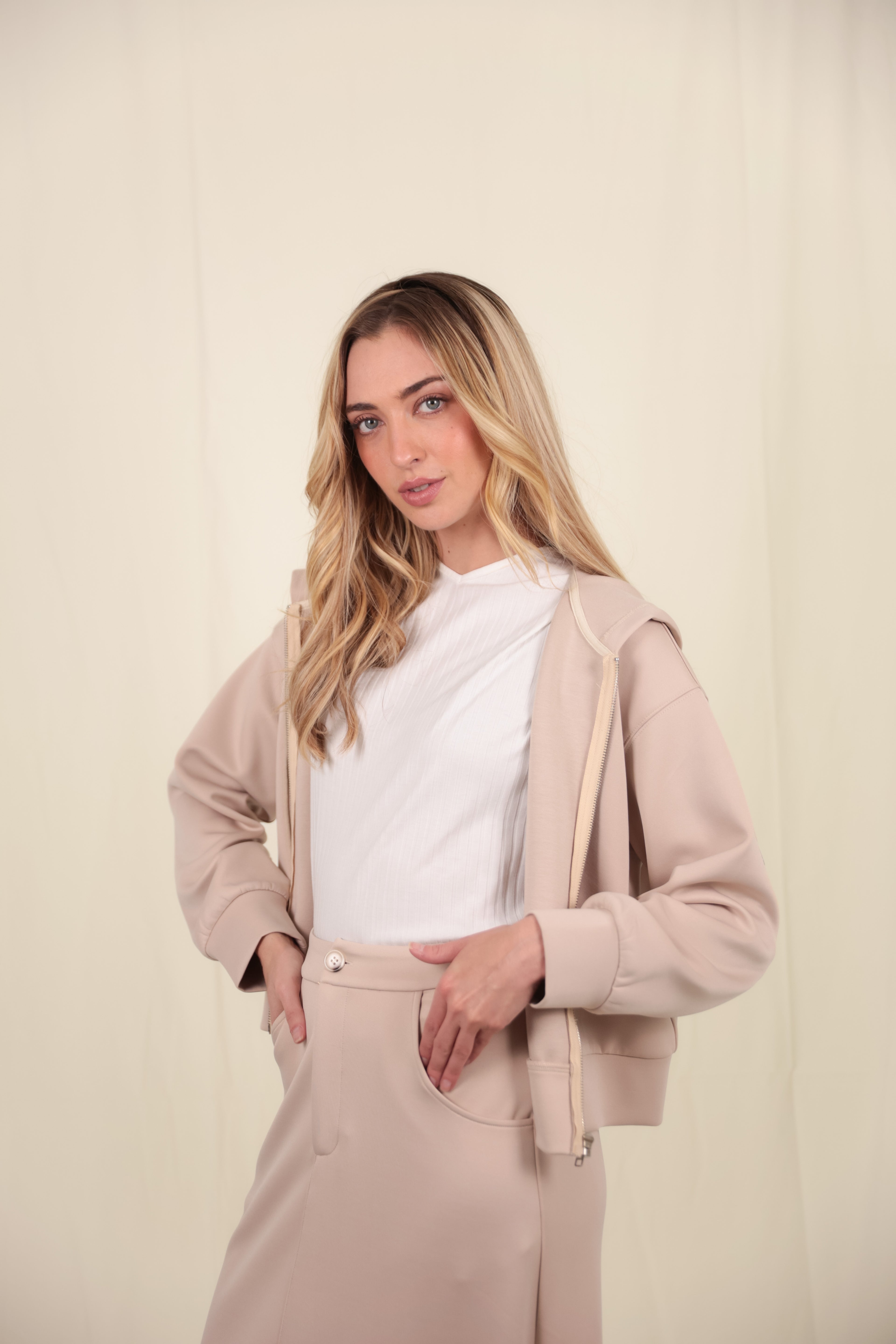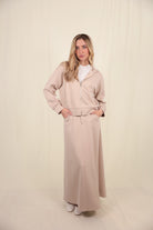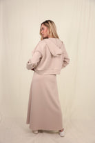 2 piece The Byrd Ivory Travel Set is perfect for your on-the-go lifestyle. This 2-piece set includes a hoodie with a zipper and pull string hood, along with an ivory colored Aline skirt. Stay cozy and stylish while traveling, all in one convenient set.Discounted products are not returnable or exchangeable