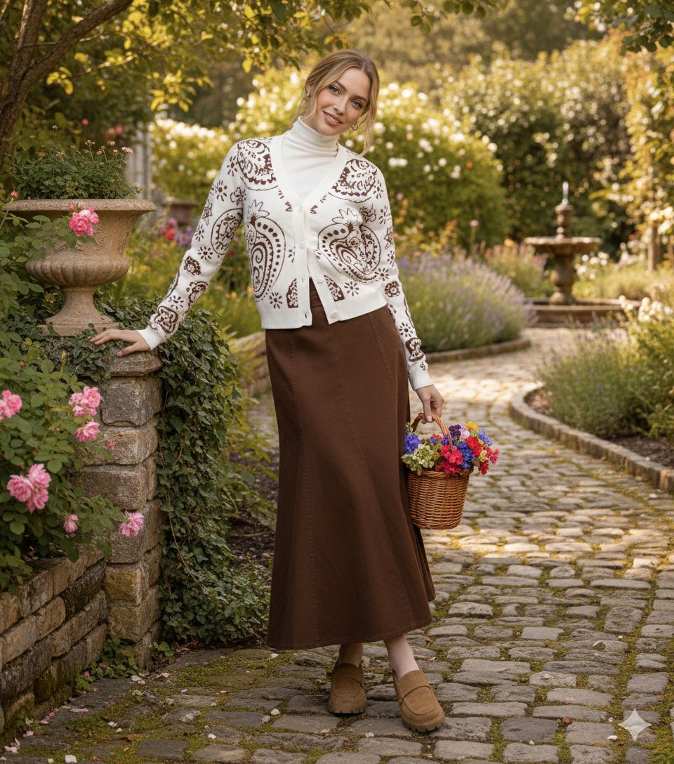 This cream cardigan features a beautiful brown intarsia design, adding a touch of elegance to any outfit. Crafted with the finest materials, it provides warmth and comfort while making a stylish statement. Upgrade your wardrobe with this must-have piece.mDiscounted products are not returnable or exchangeable