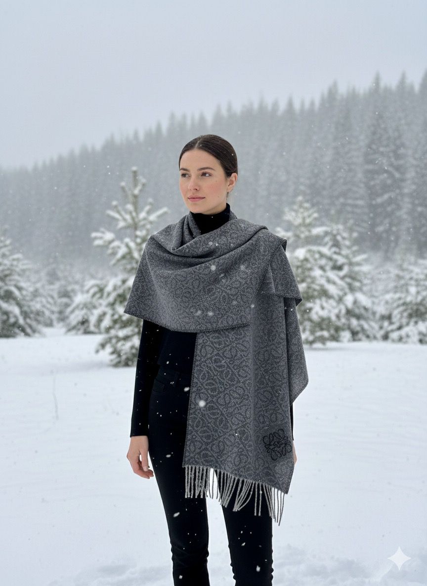 Loewe Charcoal Wool Logo Scarf with Fringe
