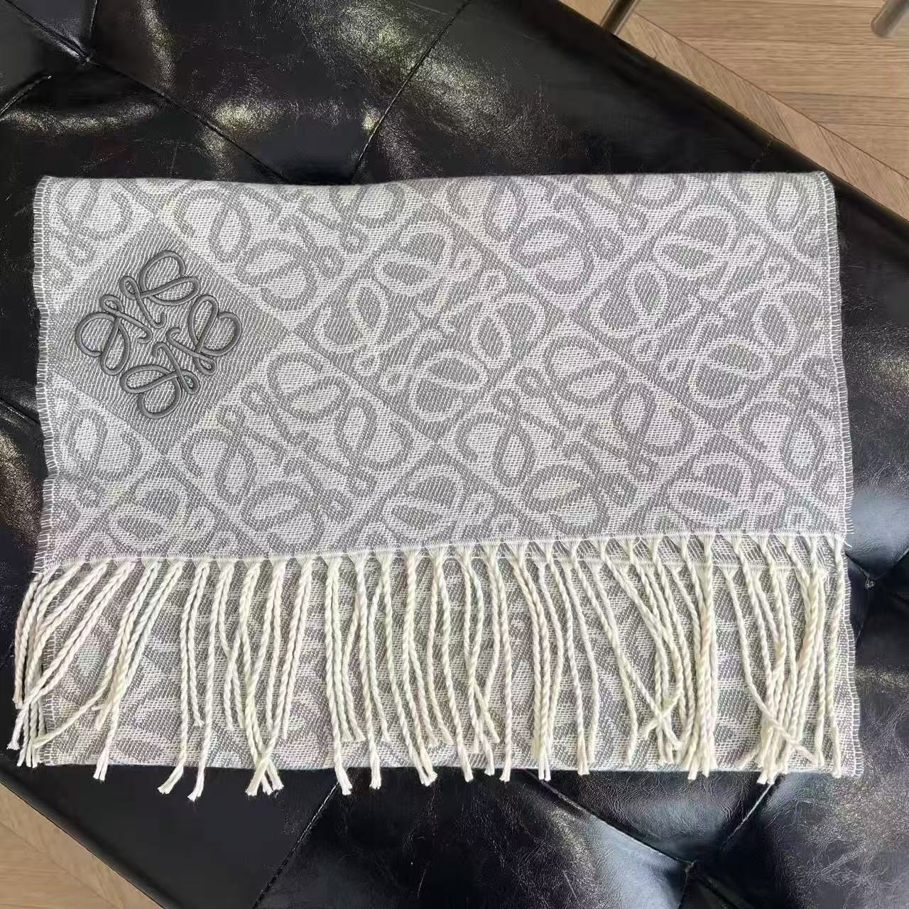 Loewe Grey Wool Allover Logo Scarf with Fringe