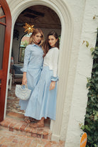 Adina Blue Pinstripe Double Drawstring Maxi Skirt