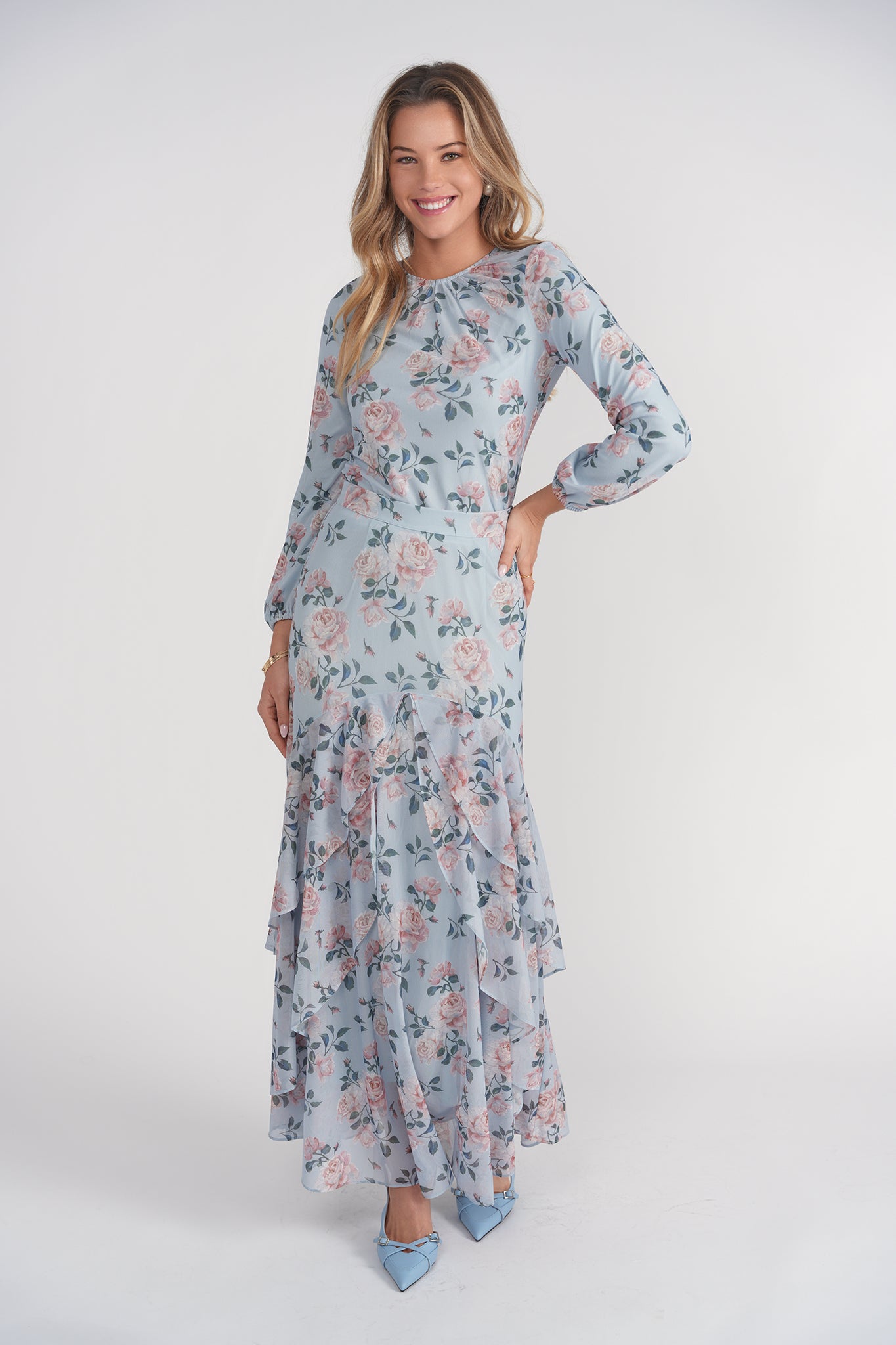 Adina Debbie Printed Blue and Pink Floral Top (coordinating skirt)
