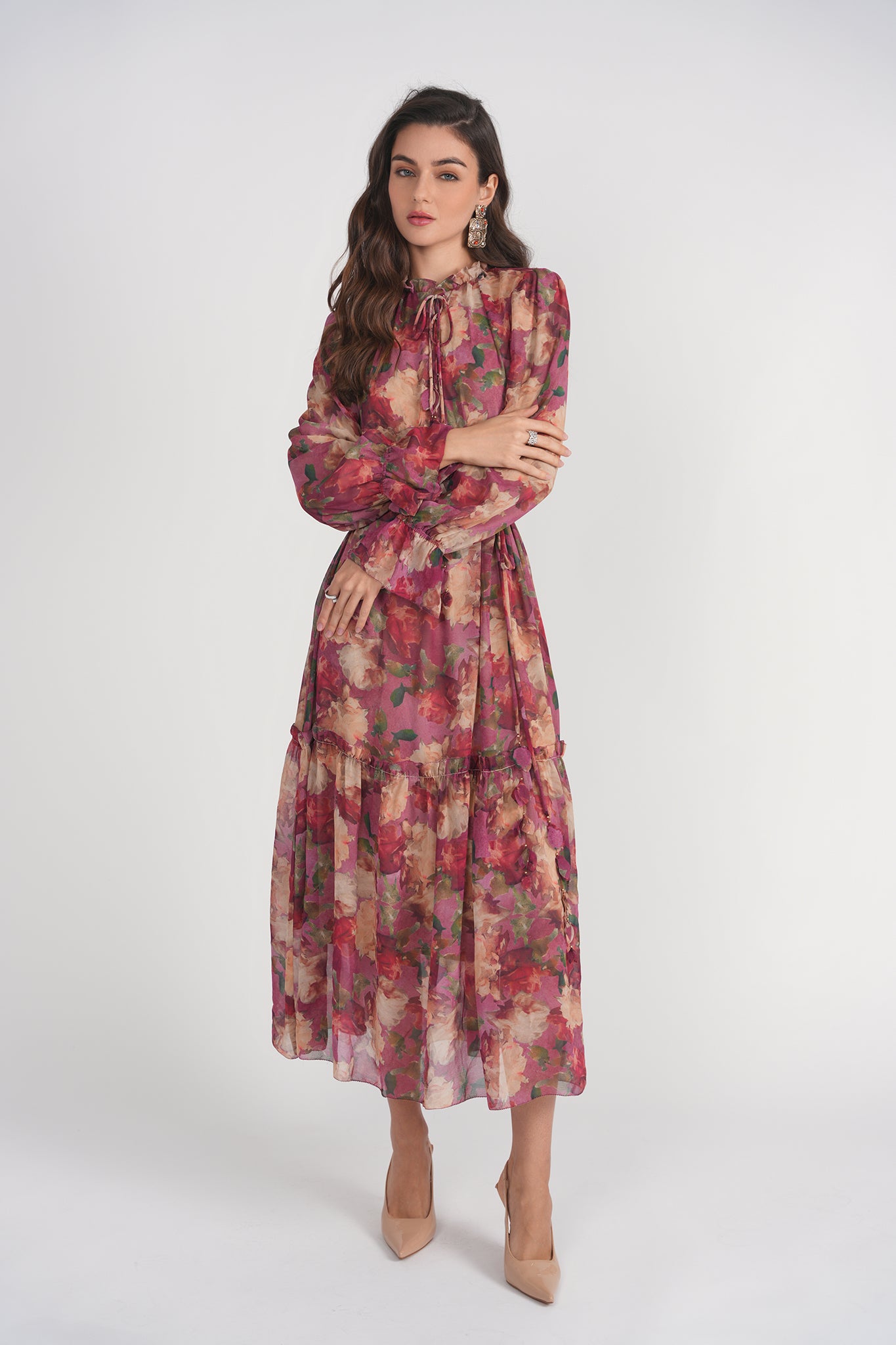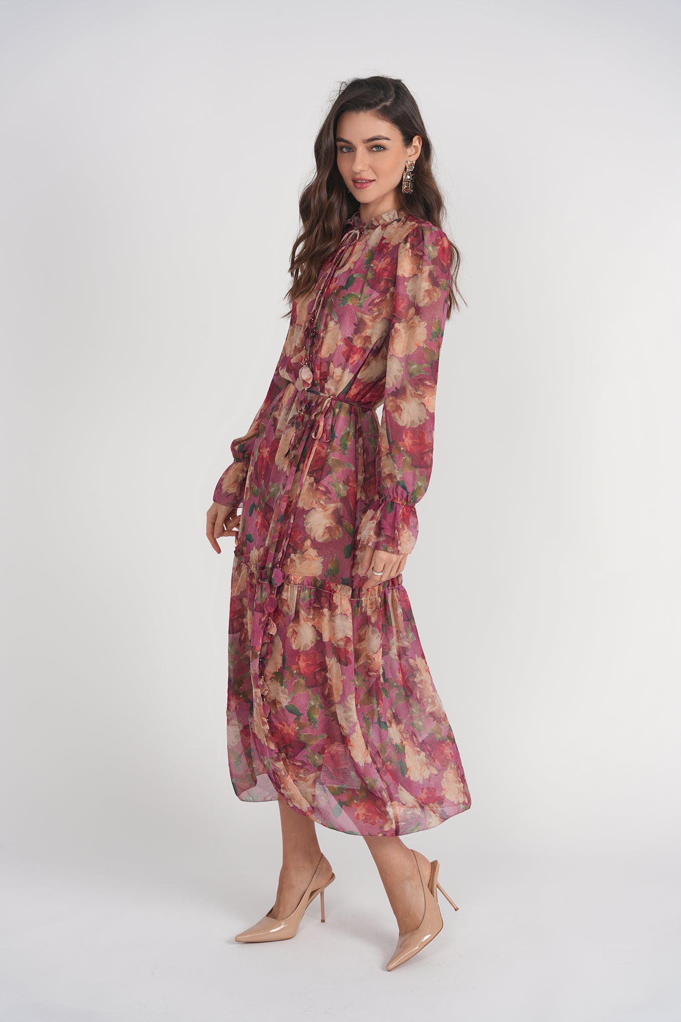 Flattering midi length with a tiered skirt for added volume