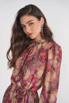 The Evie Midi in Bold Floral captures the spirit of modern femininity with its sweeping silhouette and painterly blooms. Crafted from lightweight, semi-sheer fabric, this dress exudes movement and grace with every step. The vivid floral print, complemented by delicate detailing, creates a look that’s both striking and timeless perfect for any occasion that calls for effortless sophistication.