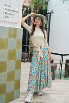 Enhance your wardrobe with Adina's Funky Floral Tiered Maxi Skirt. This fashionable and versatile skirt features a beautiful floral print in various vibrant colors. With its tiered design, it is perfect for adding a touch of style to any outfit, making it a must-have piece for any fashion-forward individual.Discounted products are not returnable or exchangeable