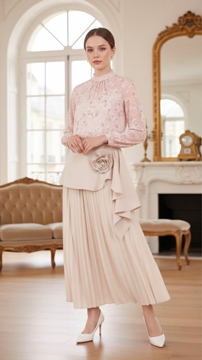 Beulah Flower Ruffle Wrap and Pleat Skirt
