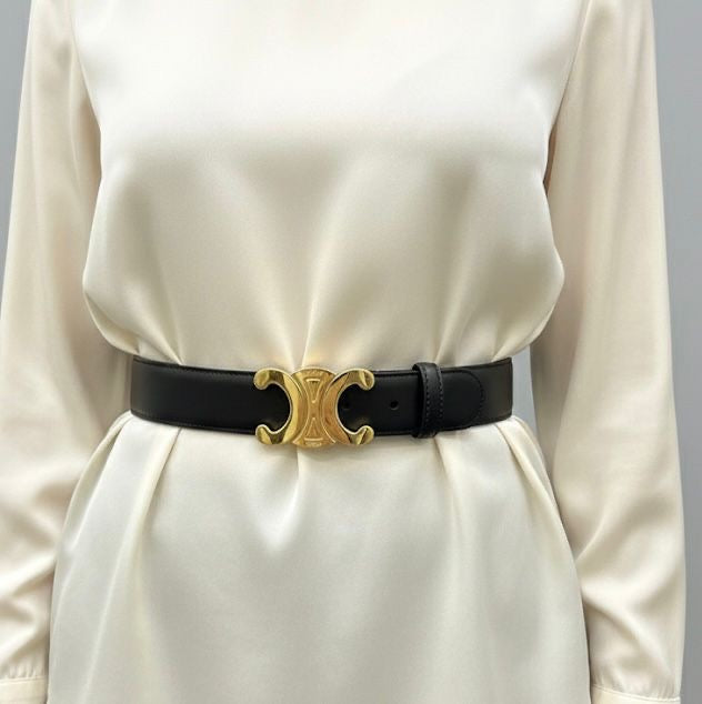 FHTH Celine Black Logo Belt 1 1/4 in