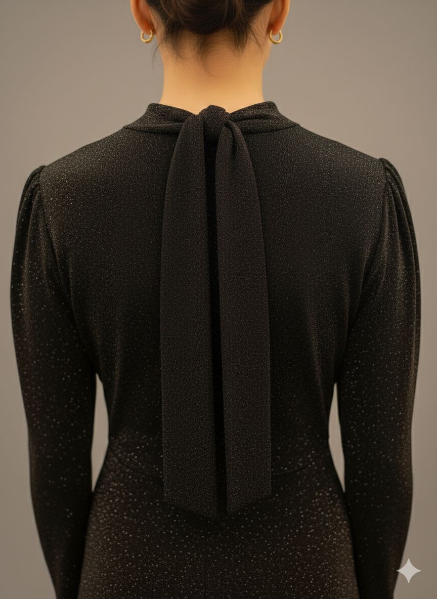 Elevate your event attire with the Adina Olivia Black Shimmer Midi Dress. This effortlessly chic dress features a stunning black shimmer fabric, exuding elegance and sophistication. The back tie detail adds a touch of modern charm, making it the perfect choice for any occasion.Discounted products are not returnable or exchangeable